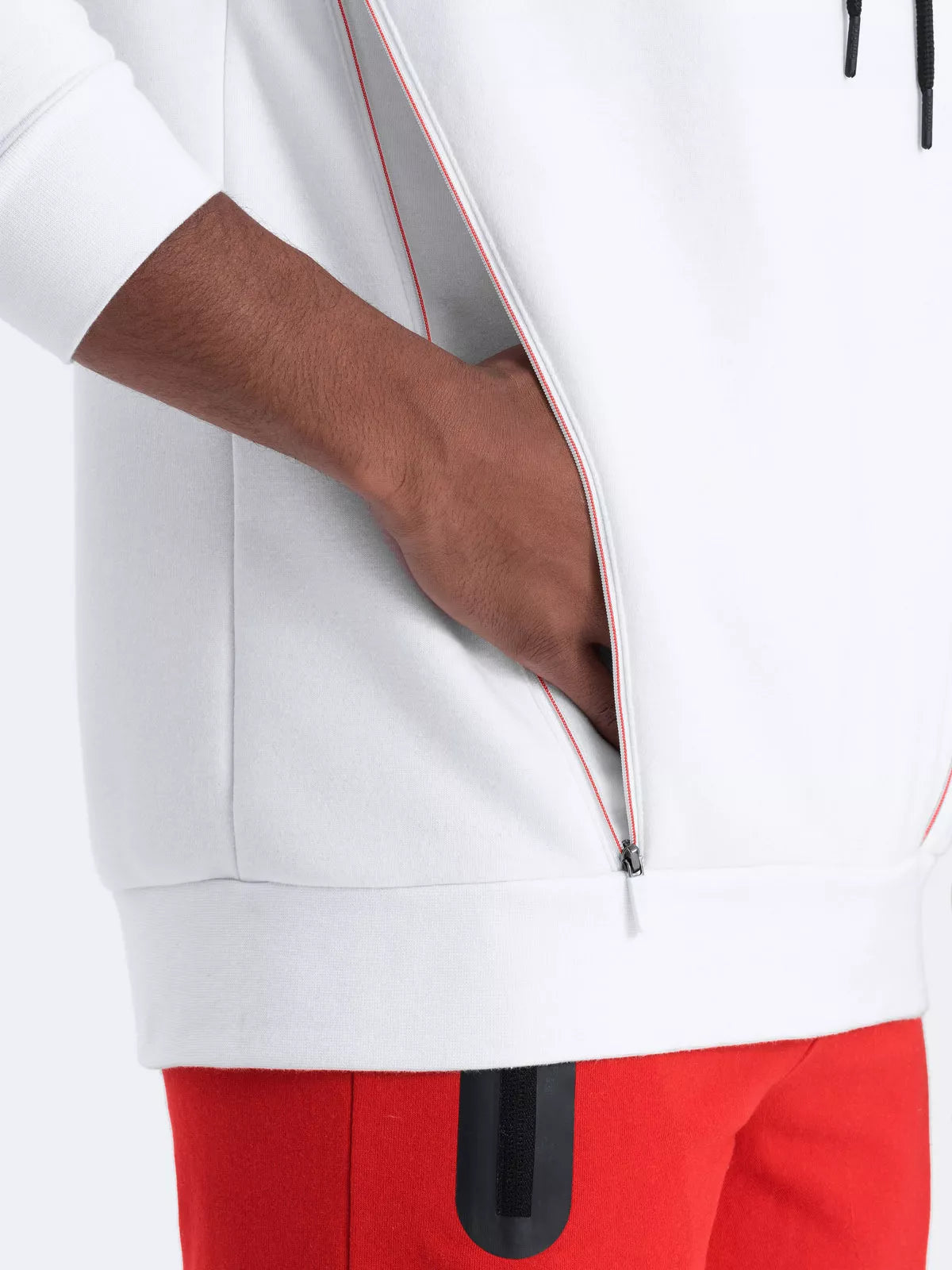 Vyriškas džemperis su gobtuvu. Užsegamos didelės kišenės. Džemperis puikus pasirinkimas laisvalaikio praleidimui.