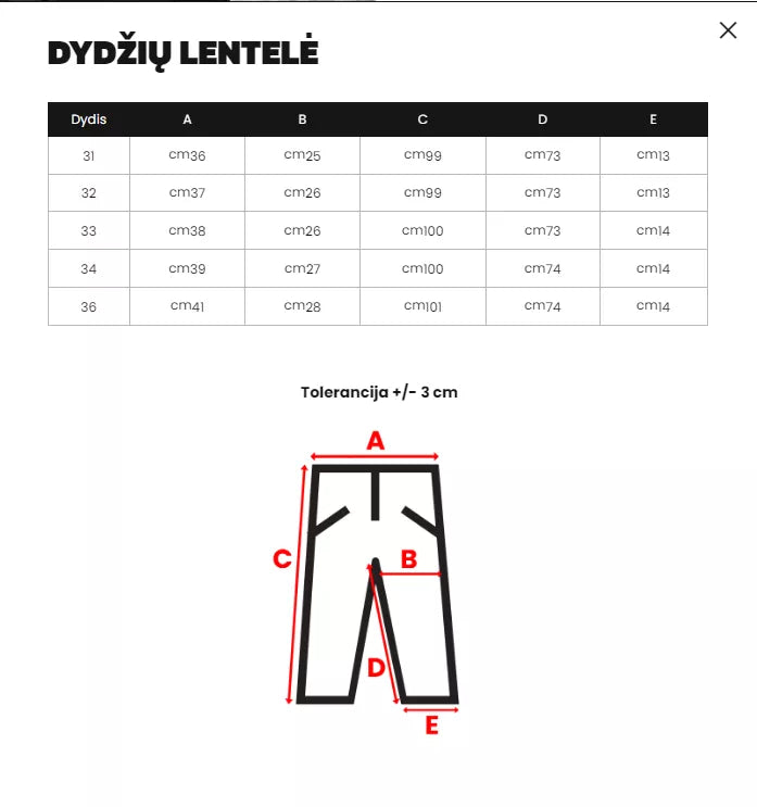 Modelis (183 cm, 80 kg) dėvi 32 dydį.