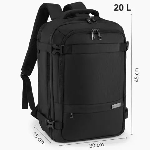 Kelioninė kuprinė su nešiojamojo kompiuterio skyriumi – tai stiliaus ir funkcionalumo derinys, kuris atitiks šiuolaikinio keliautojo reikalavimus. Nesvarbu, ar vykstate į trumpą verslo kelionę, ar į ilgesnę kelionę, ši kuprinė suteiks jums komfortą ir saugumą brangiausiems daiktams. Kuprinė turi dvi rankenas, kurios leidžia nešti kuprinę vertikaliai arba horizontaliai – nuspręsite jūs! Dėl keturių suspaudimo diržų galite lengvai sumažinti savo bagažo tūrį. Kuprinė gali būti naudojama kaip rankinis bagažas WizzAir skrydžiuose.