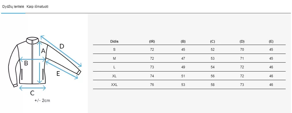 Dydžių lentelę rasite nuotraukų galerijoje.