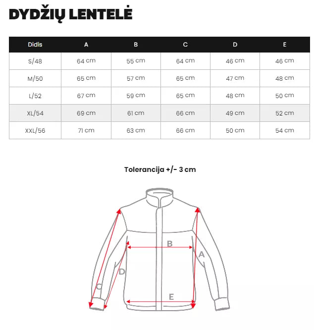 Dydžių lentelę rasite nuotraukų galerijoje.