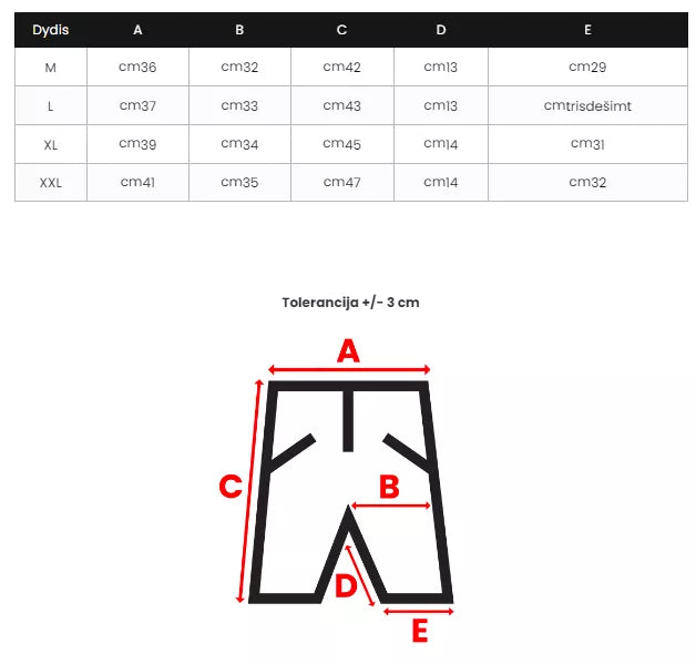 Dydžių lentelę rasite nuotraukų galerijoje.