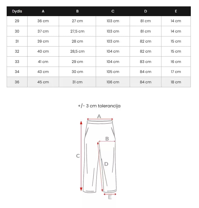 Dydžių lentelę rasite nuotraukų galerijoje.