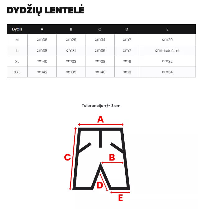 Dydžių lentelę rasite nuotraukų galerijoje.