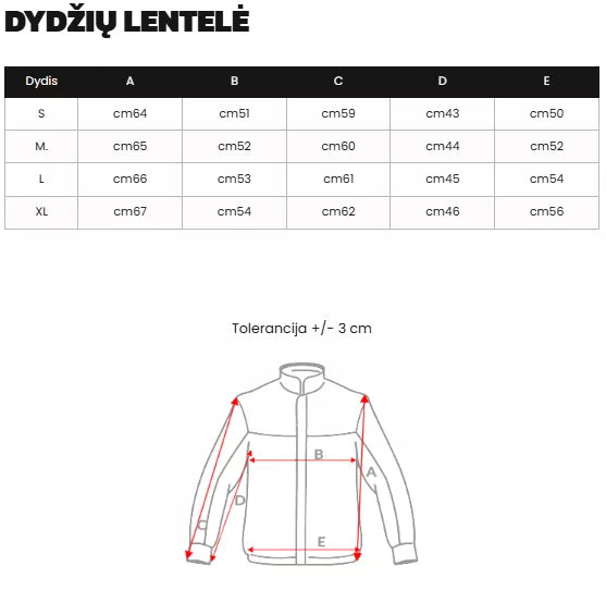 Dydžių lentelę rasite nuotraukų galerijoje.