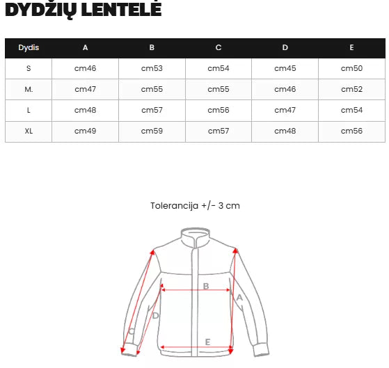 Dydžių lentelę rasite nuotraukų galerijoje.