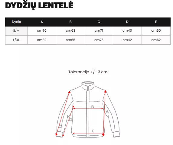 Dydžių lentelė rasite nuotraukų galerijoje.
