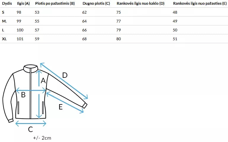Dydžių lentelę rasite nuotraukų galerijoje.