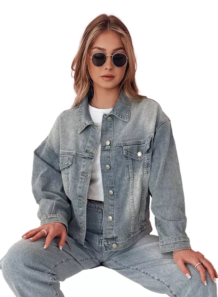 Negabaritinis džinsinis švarkas su laisvu kirpimu, sagomis. Keturios dekoratyvinės kišenės suteikia žavesio, o reguliuojamos rankovės leidžia pritaikyti stilių pagal savo pageidavimus. Puikiai tinka urbanistiniam stiliui, tinka tiek prie džinsų, tiek prie suknelių.