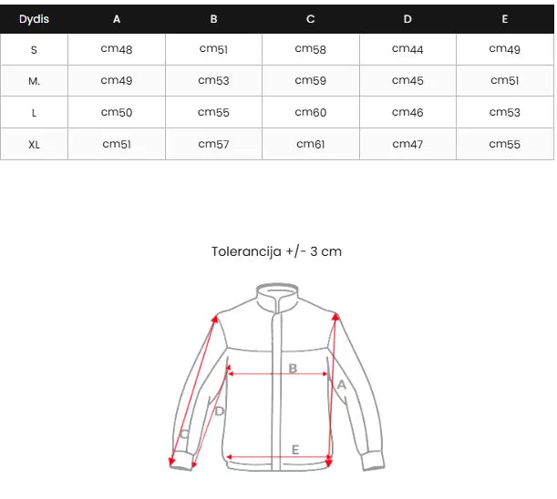 Dydžių lentelę rasite nuotraukų galerijoje.