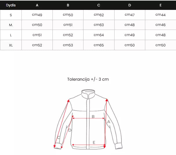 Dydžių lentelę rasite nuotraukų galerijoje.