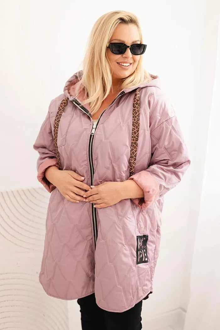 Ši stilinga moteriška dygsniuota striukė tinka moterims, dėvinčioms didesnius dydžius – nuo XL iki 4XL. Laisvas, didelio dydžio kirpimas užtikrina maksimalų komfortą ir puikiai priglunda, nevaržo judesių. Modelis pasižymi geometriniu dygsniavimu, kuris vizualiai lieknina siluetą, ir madingu leopardo rašto gobtuvu su raišteliu. Užtrauktukas ir praktiška kišenė ant krūtinės pabrėžia modernų ir funkcionalų striukės charakterį. Tai puikus pasirinkimas vėsesnėms dienoms – jis dera su džinsais ir aulinukais iki kulkšnių, taip pat su sportinėmis tamprėmis ir sportbačiais. Puikiai tinka kasdieniam dėvėjimui: pasivaikščiojimui, apsipirkimui, darbui ar savaitgalio išvykai.