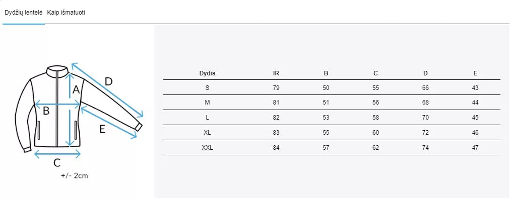 Dydžių lentelė nuotraukų galerijoje.