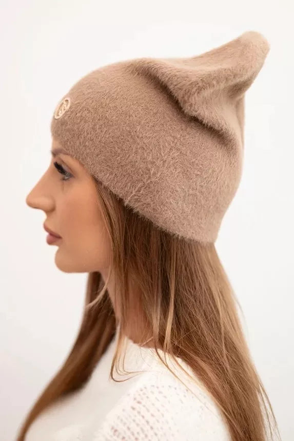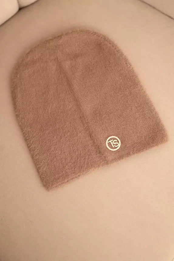 Minimalistinė ir elegantiška moteriška kepurė, pasiūta iš labai minkšto ir malonaus liesti pūkuoto megzto audinio. Subtilus dekoratyvinis logotipo užrašas priekyje suteikia stiliaus.
