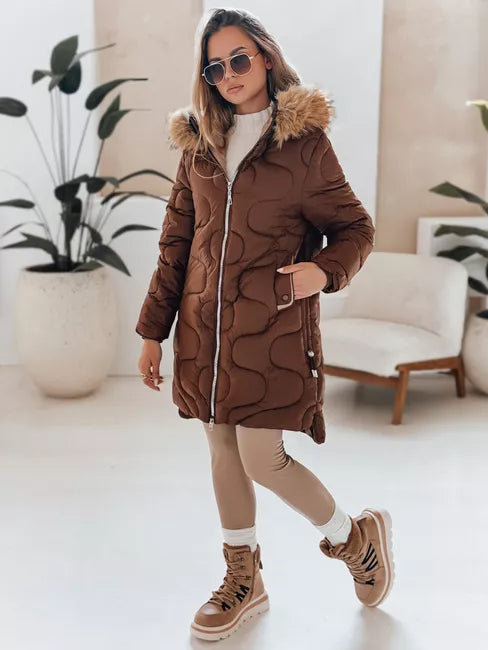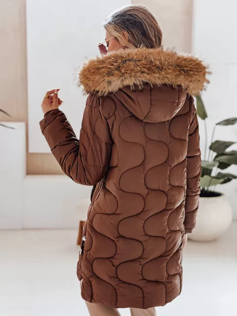 Šilta dygsniuota striukė su dideliu gobtuvu, apsiūta dirbtiniu kailiu, yra būtinas žiemos sezono drabužis. Jos šiek tiek aptemptas kirpimas, dekoratyvinės siūlės ir dvigubas užtrauktukas geresniam prigludimui puikiai tinka tiek pasivaikščiojimams, tiek žiemos apsipirkimui mieste. Ji apsaugo nuo vėjo ir šalčio. Šios striukės gobtuvas nenuimamas, yra dvi išorinės kišenės, viena vidinė.