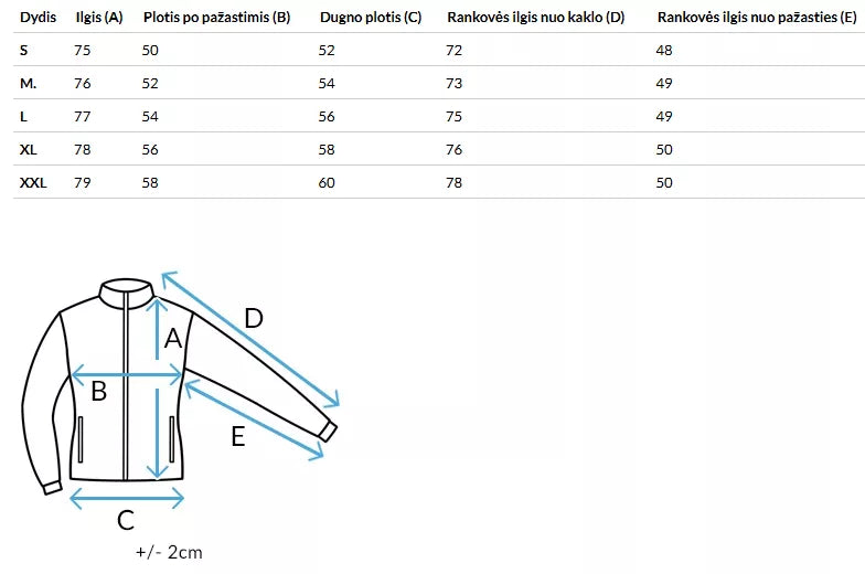 Dydžių lentelę rasite nuotraukų galerijoje.