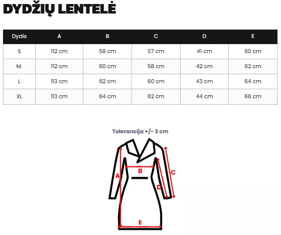 Dydžių lentelę rasite nuotraukų galerijoje.