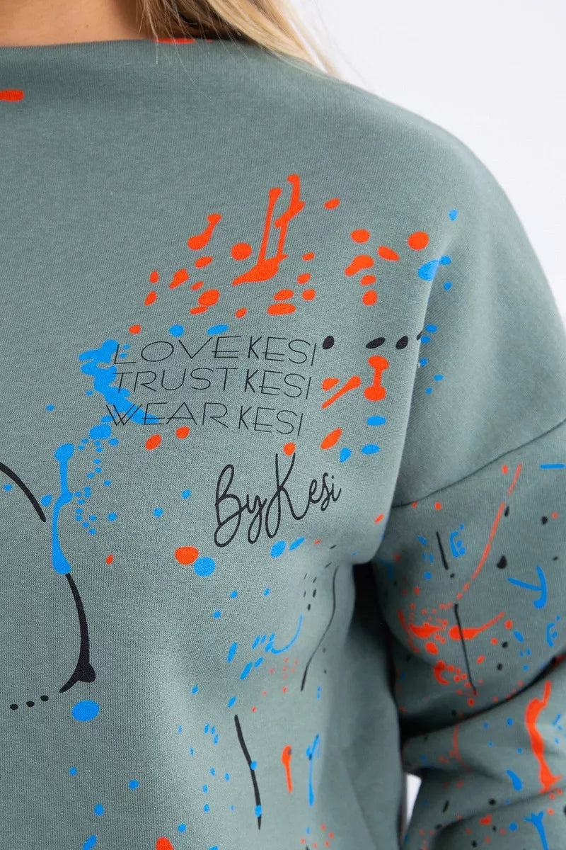 Apšiltintą džemperio ir kelnių komplektas. Džemperis ir kelnės su spalvingu raštu. Jei mėgstate išsiskirti iš minios šis komplektas kaip tik Jums. Dydis yra universalus ir tinka S, M arba L dydį dėvinčioms moterims.