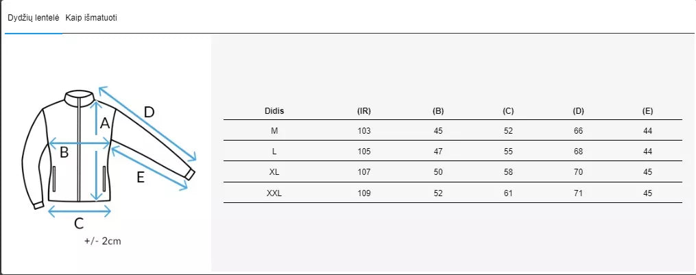 Dydžių lentelę rasite nuotraukų galerijoje.