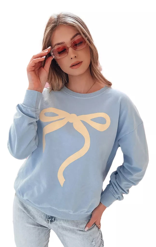 Moteriškas džemperis su žaviu kaspinėlio raštu, kuris bet kokiam stiliui suteikia mergaitiško žavesio. Pagaminta iš minkšto, kvėpuojančio audinio, užtikrina komfortą visą dieną. Klasikinis kirpimas su apvalia iškirpte ir rankogaliais ant rankovių puikiai priglunda prie figūros. Vienas dydis tinka visiems nuo XS iki L. Puikiai tinka kasdieniam dėvėjimui.