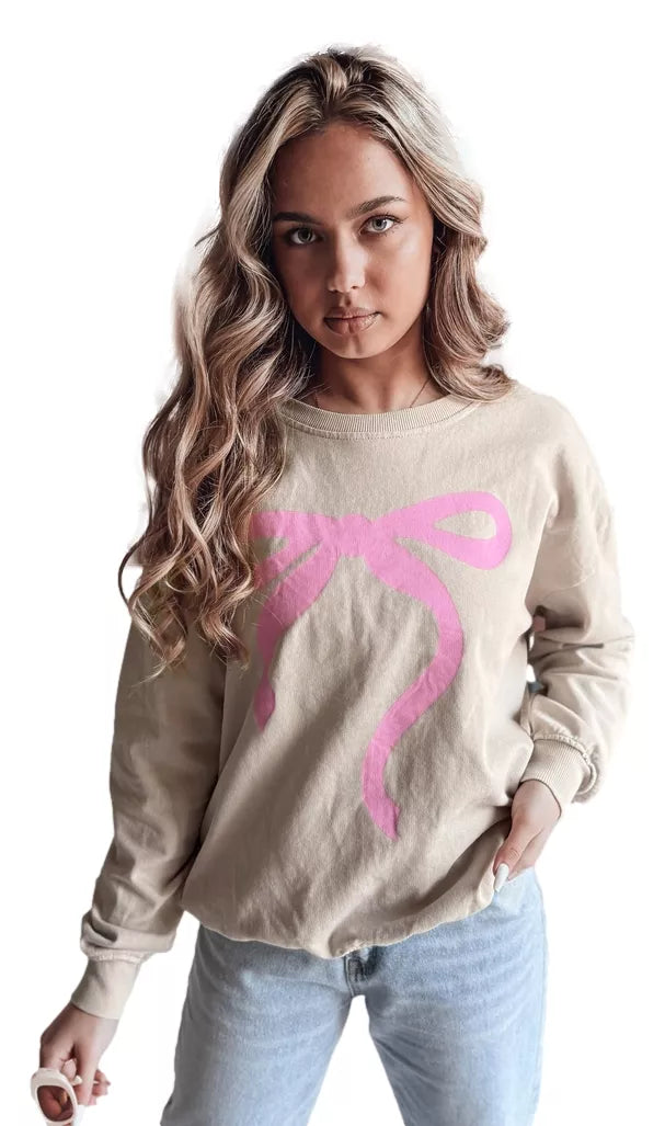 Moteriškas džemperis su žaviu kaspinėlio raštu, kuris bet kokiam stiliui suteikia mergaitiško žavesio. Pagaminta iš minkšto, kvėpuojančio audinio, užtikrina komfortą visą dieną. Klasikinis kirpimas su apvalia iškirpte ir rankogaliais ant rankovių puikiai priglunda prie figūros. Vienas dydis tinka visiems nuo XS iki L. Puikiai tinka kasdieniam dėvėjimui.