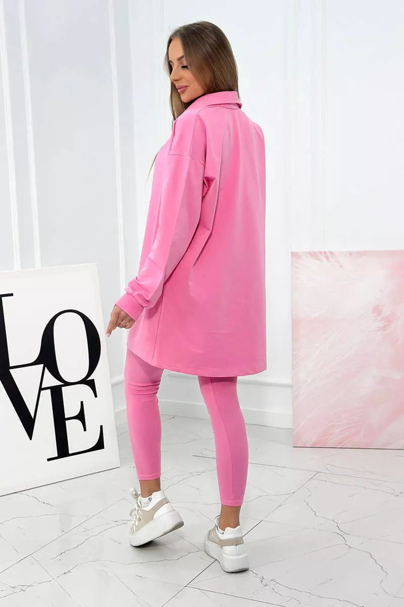 Pristatome jums modernų ir stilingą trijų dalių komplektą, kurį sudaro marškinėliai su sagutėmis, viršutinė dalis ir tamprės. Šiame rinkinyje puikiai dera patogumas ir madingas dizainas - tai itin patrauklus ir funkcionalus derinys. Džemperis pagamintas iš minkštos medžiagos, kad būtų patogu dėvėti. Laisvas kirpimas leidžia laisvai judėti, idealiai tinka tiek treniruotėms, tiek kasdieniam dėvėjimui. Į šį rinkinį įeinanti viršutinė dalis puikiai papildo džemperį. Pasiūtas iš elastingo audinio, jis puikiai priglunda ir pabrėžia moterišką siluetą. Nesvarbu, ar ketinate jį dėvėti treniruočių metu, ar norite puikiai atrodyti kasdien, šis komplektas tikrai pateisins jūsų lūkesčius ir leis jums jaustis užtikrintai bei stilingai bet kokioje situacijoje. Dydis yra universalus ir tiks S ir M dydį dėvinčioms moterims.