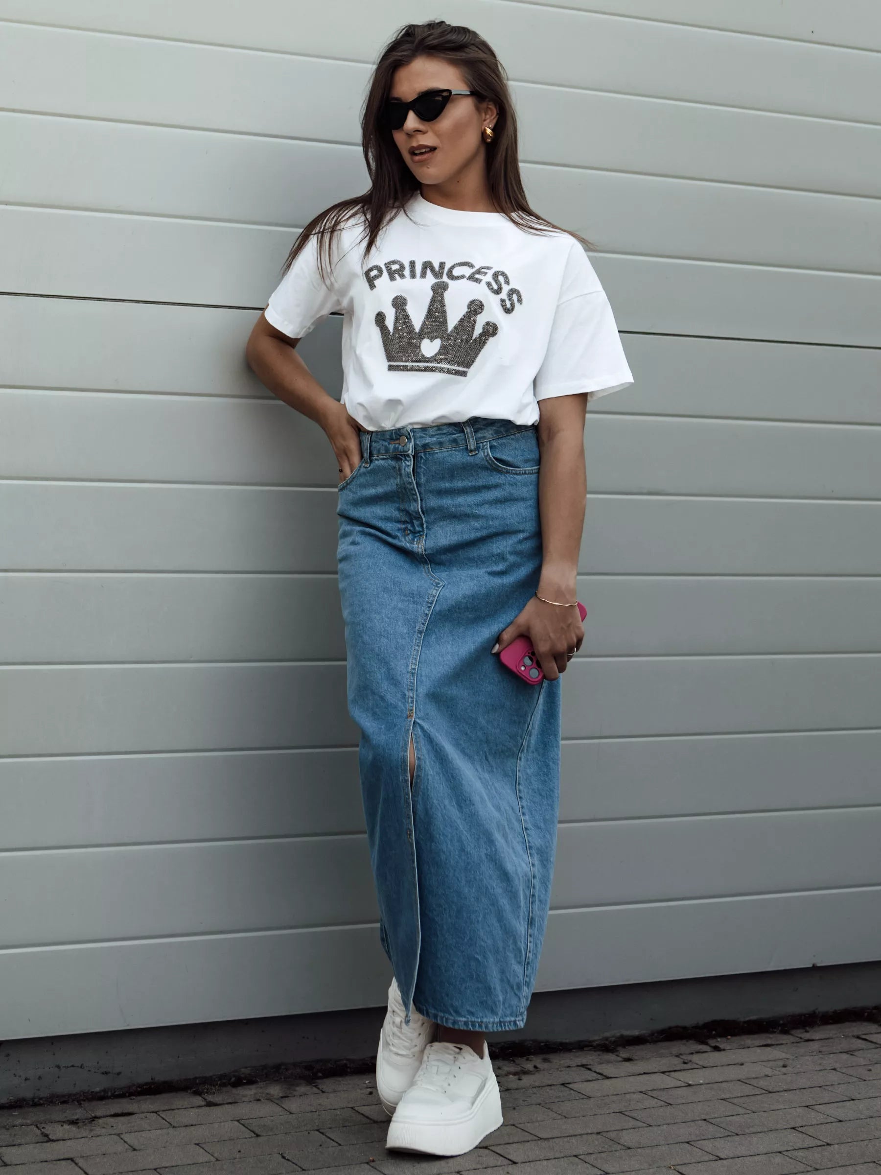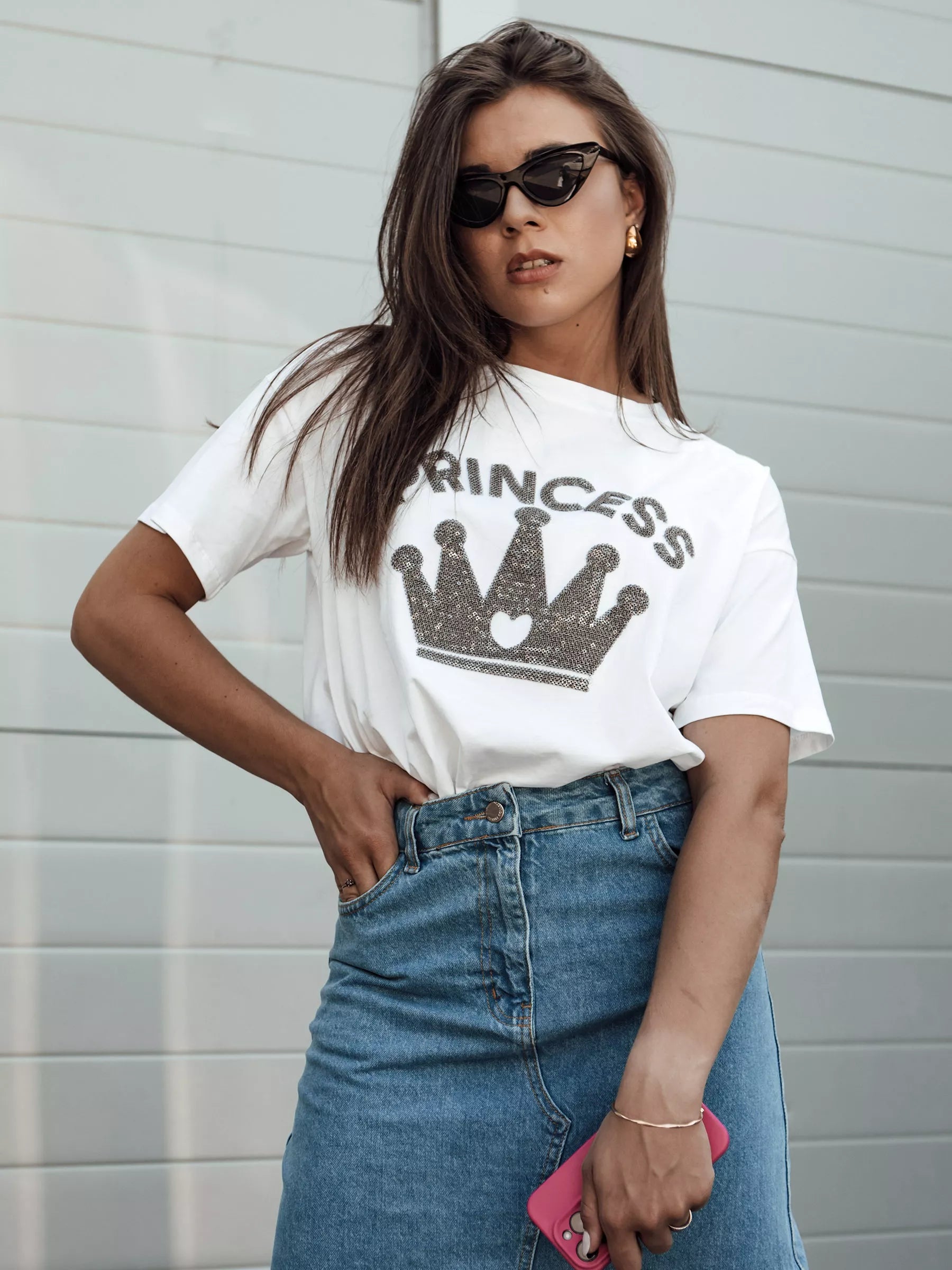 PRINCY marškinėliai yra modernaus stiliaus sinonimas su blizgančiu akcentu, kuris patraukia dėmesį ir suteikia marškinėlėms savitumo. Dėl klasikinio kirpimo jis puikiai tinka bet kokiai progai ir užtikrina patogumą dėvėti. Šiuos marškinėlius privalo turėti kiekvienos moters, norinčios pasijusti tikra princese, garderobe.