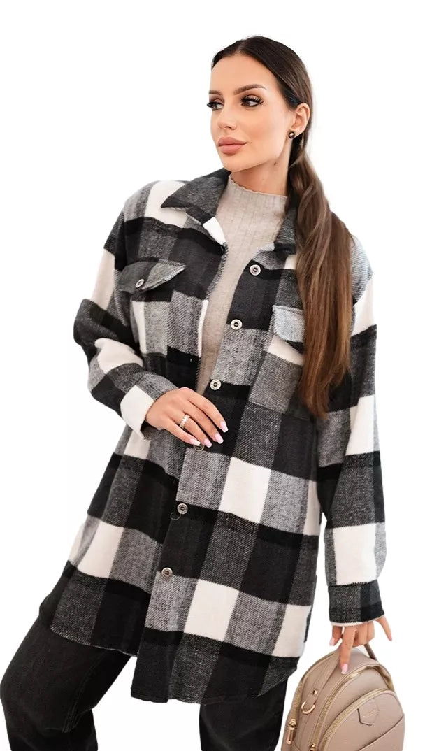 Šie stilingi moteriški marškiniai su madingu languotu raštu – puikus pasirinkimas vėsesnėms dienoms. Laisvas, ilgesnis kirpimas užtikrina komfortą ir judėjimo laisvę, tuo pačiu suteikdamas mados pojūtį. Jie puikiai pakeičia lengvą švarką ar megztinį ir dera tiek su džinsais, tiek su tamprėmis. Šis modelis pasižymi klasikine apykakle, ilgomis rankovėmis ir praktiška kišene su atvartu ties krūtine. Sagų užsegimas leidžia pasirinkti universalų stilių – galite dėvėti atsegtą arba susagstytą, priklausomai nuo progos. Pagamintas iš minkštos ir malonios liesti medžiagos, užtikrina komfortą visą dieną.Tai puikus pasirinkimas kasdienėms išvykoms, apsipirkimui, susitikimams su draugais ar kelionėms – visada atrodysite stilingai ir jausitės patogiai. Dydis universalus ir tiks S, M arba L dydžio moterims. Italijos produkcija
