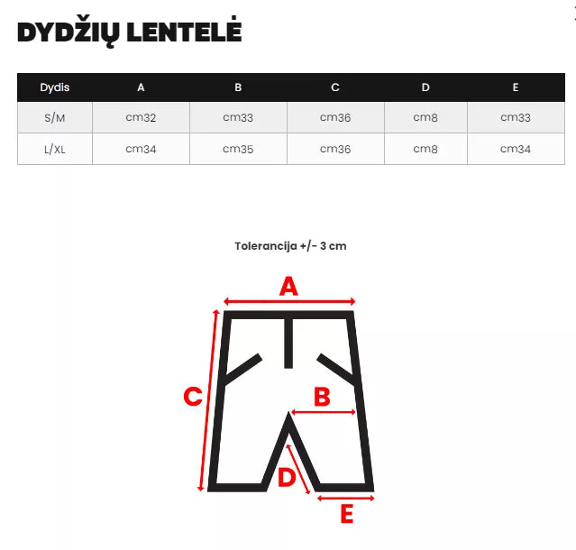 Dydžių lentelę rasite nuotraukų galerijoje.