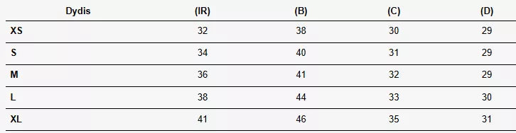 Dydžių lentelę rasie nuotraukų galerijoje.