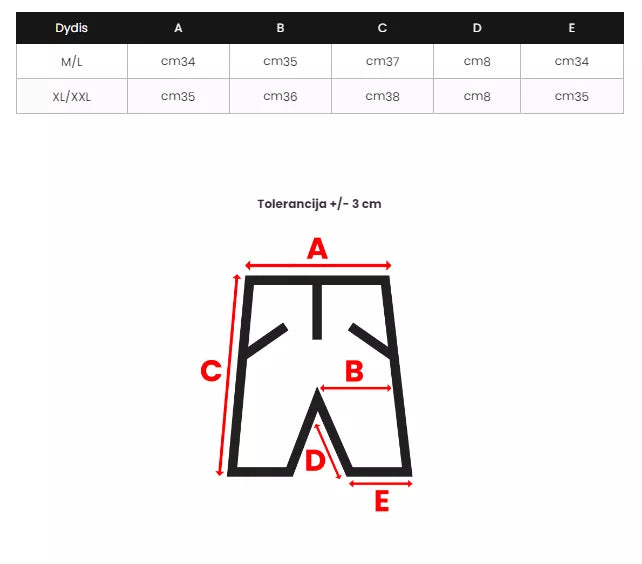 Dydžių lentelę rasite nuotraukų galerijoje.