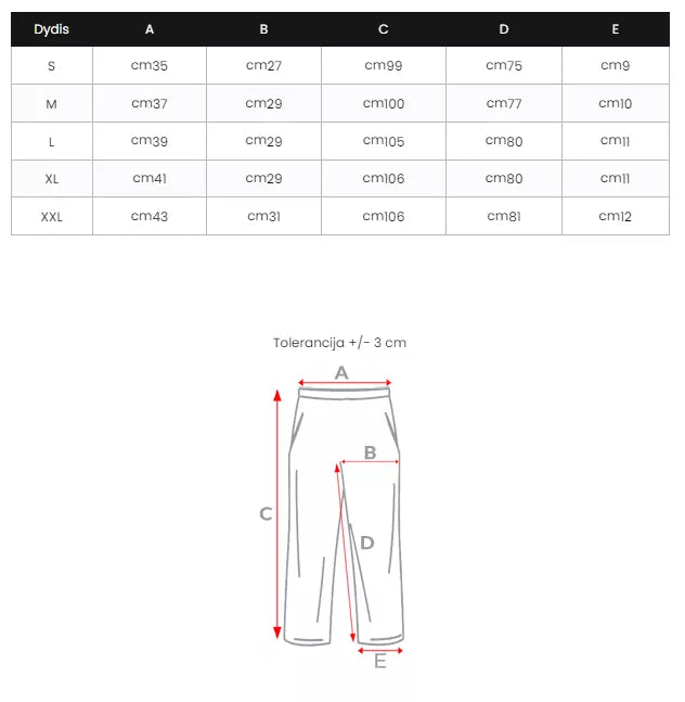 Dydžių lentelę rasite nuotraukų galerijoje.