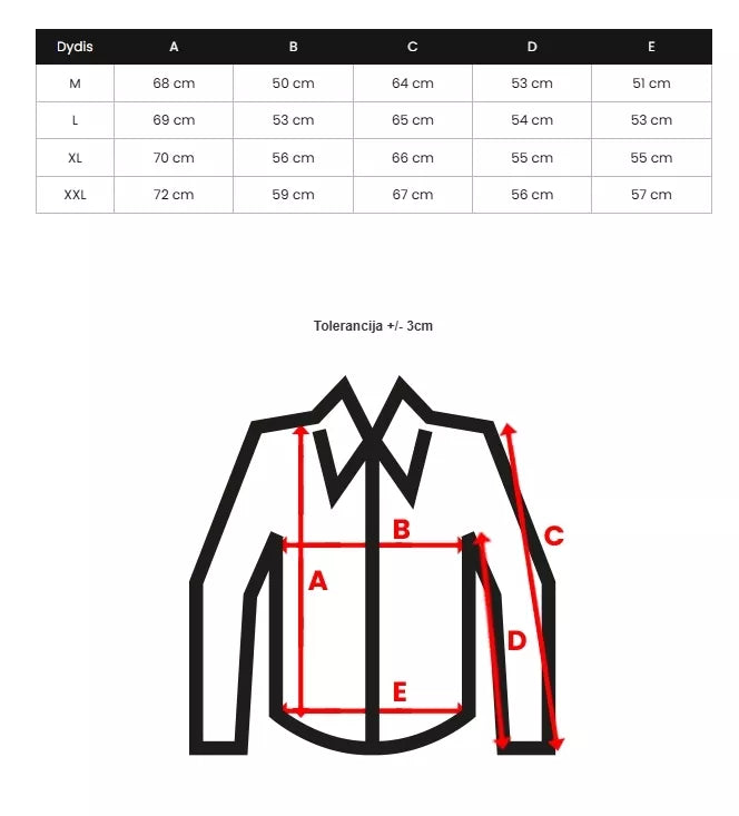 Modelis (182 cm, 87 kg) dėvi L dydį.