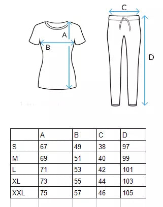 Komplektą sudaro laisvalaikio kelnės ir marškinėliai trumpomis rankovėmis.