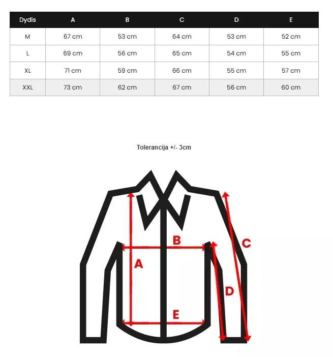 Modelis (182 cm, 87 kg) dėvi L dydį.