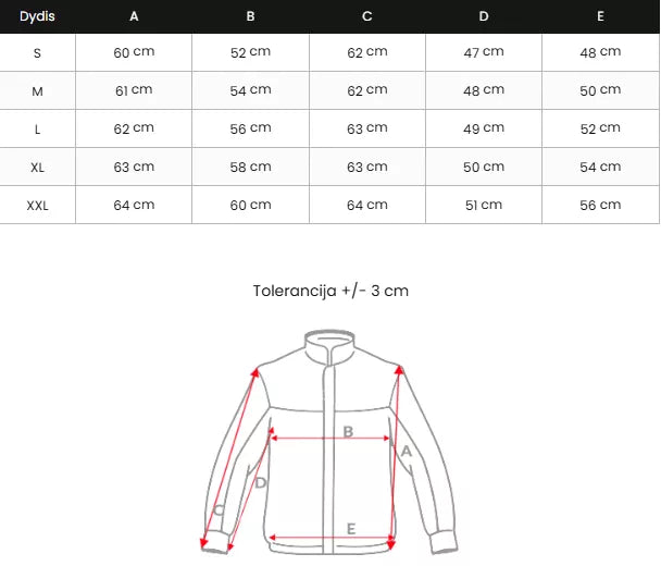 Dydžių lentelę rasite nuotraukų galerijoje.