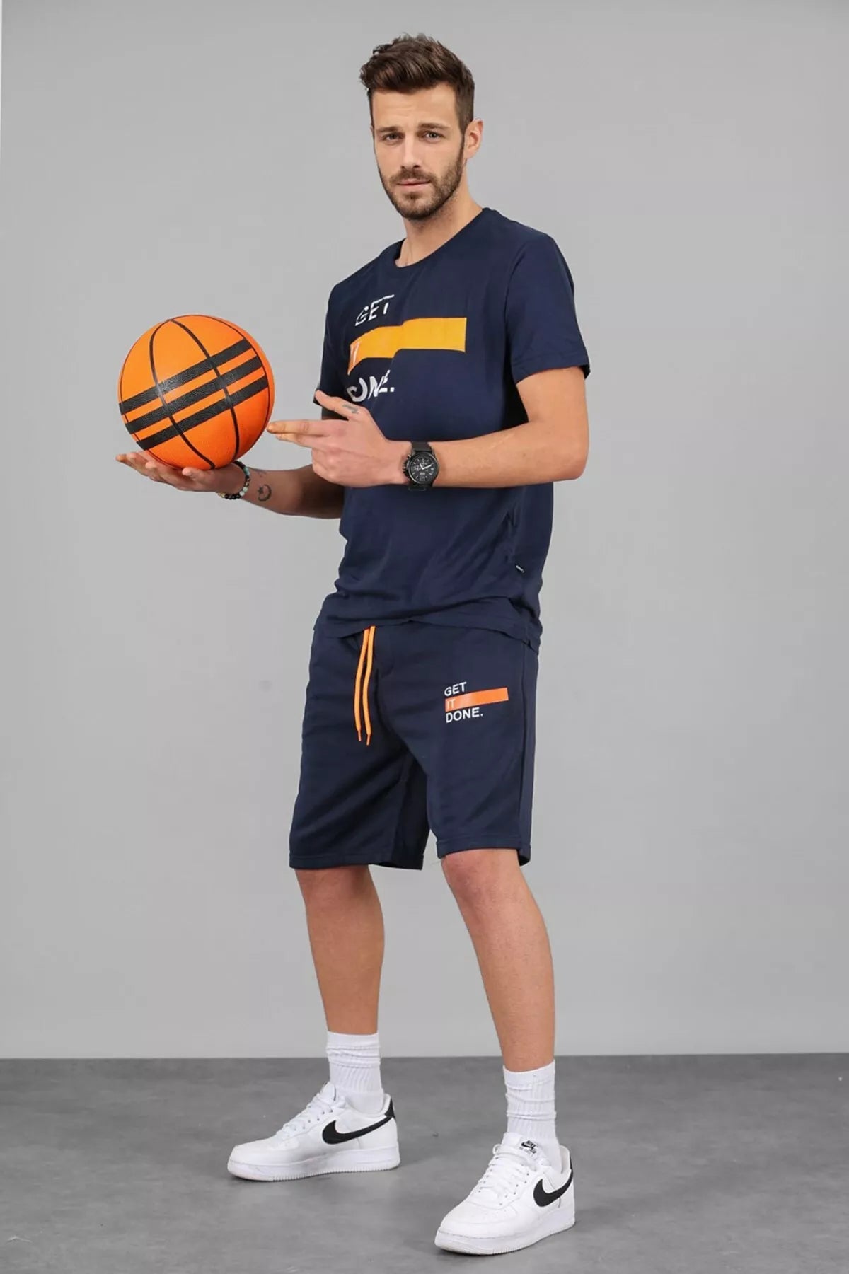 Vyriškas trumpų rankovių rinkinys. Į komplektą įeina marškinėliai ir šortai.