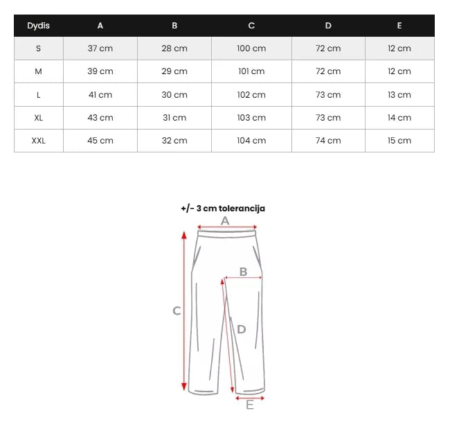 Dydžių lentelę rasite nuotraukų galerijoje.