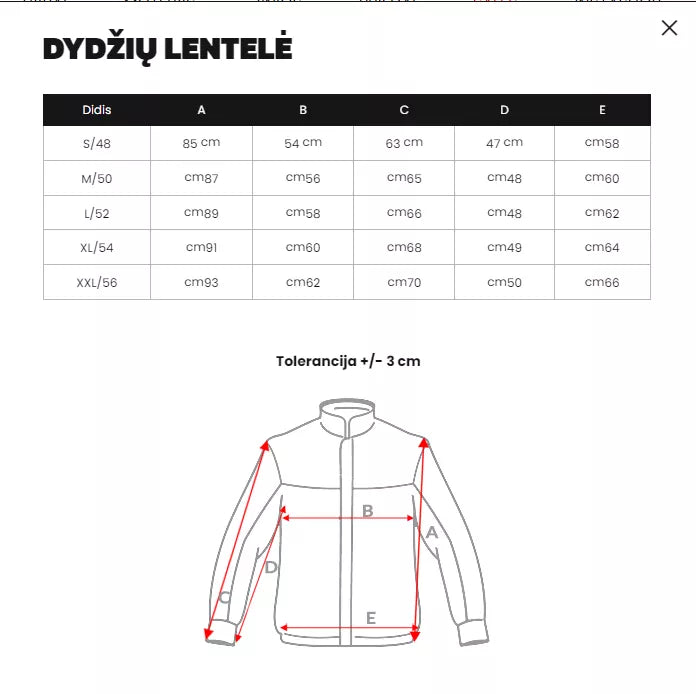 Dydžių lentelę rasite nuotraukų galerijoje.
