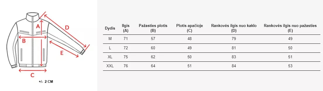 Vyriška dygsniuota striukė užsegama užtrauktuku. Šoninės kišenės užsegamos užtrauktuku. Kišenė ant rankovės.