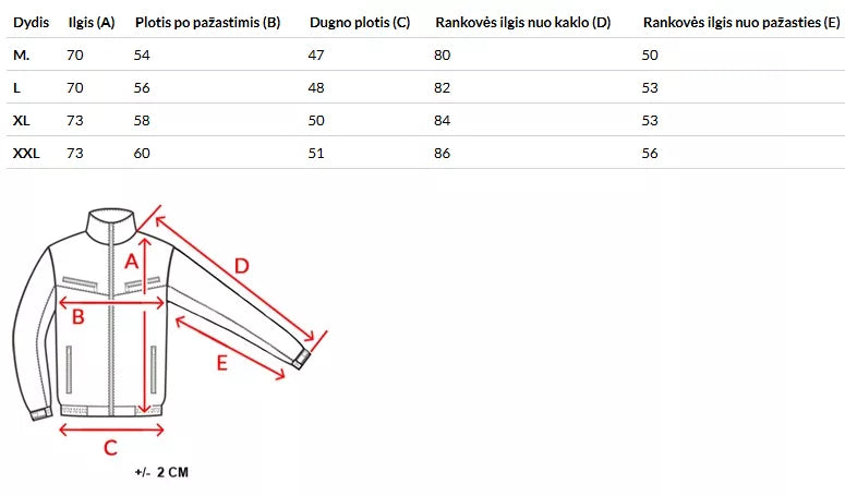 Dydžių lentelę rasite nuotraukų galerijoje.