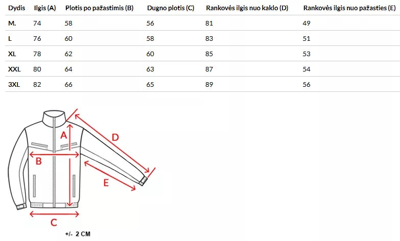 Dydžių lentelę rasite nuotraukų galerijoje.