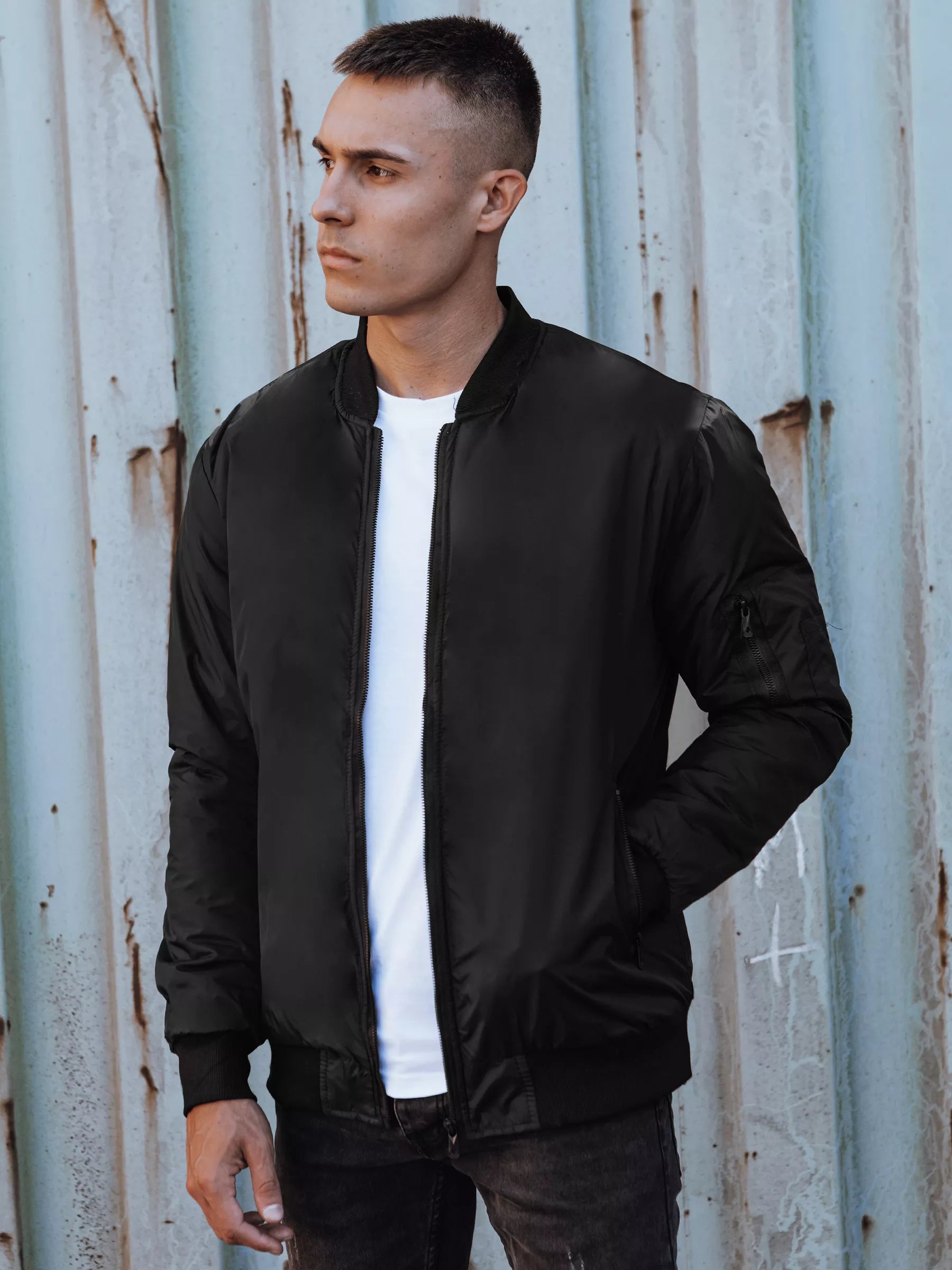 Vyriška pavasarinė striukė be gobtuvo. Striukė užsegama užtrauktuku. Kišenės taip pat užsegamos užtrauktuku.