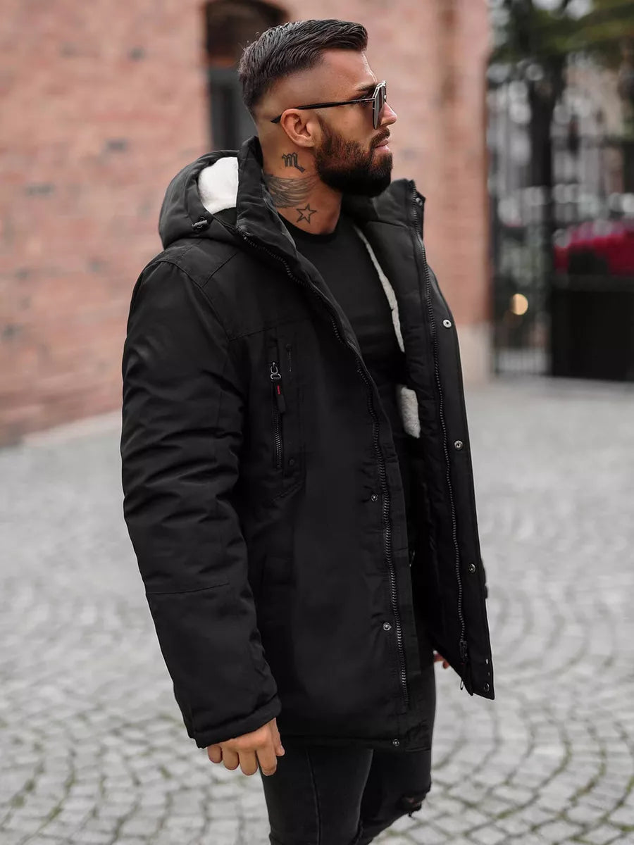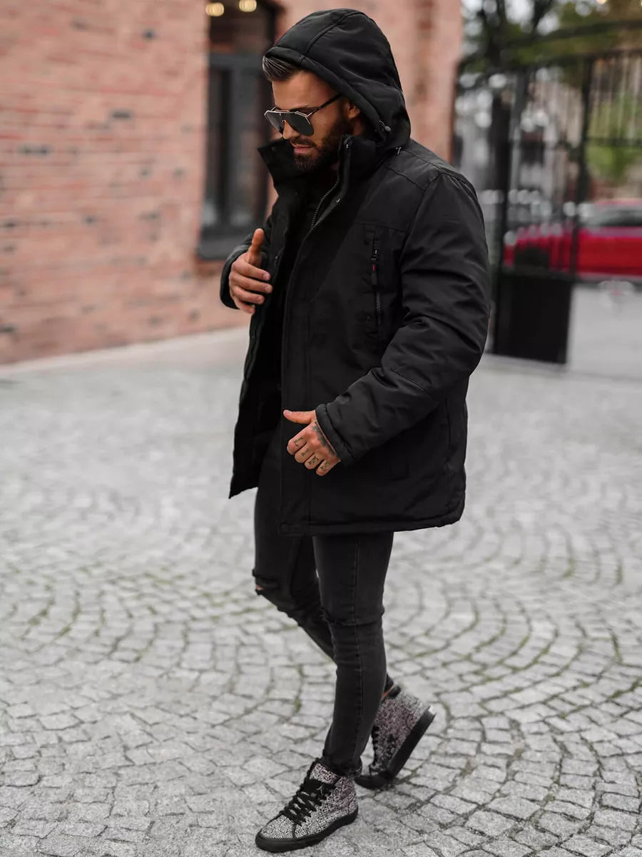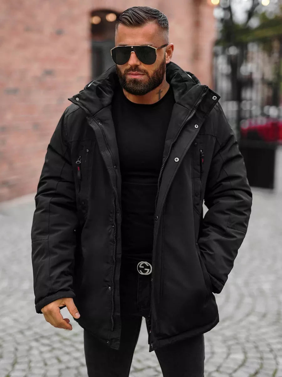 Vyriška žieminė striukė su gobtuvu. Užsegama užtrauktuku su kišenėmis.