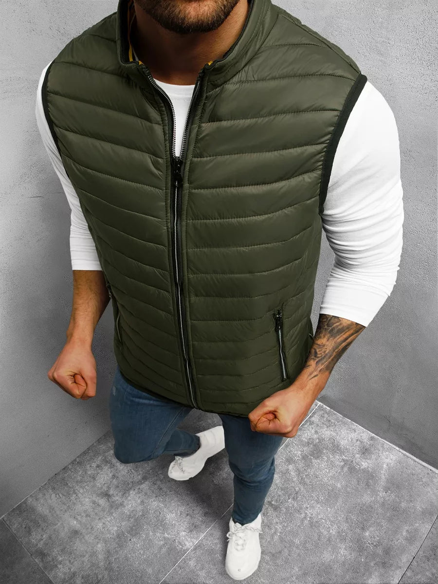 Vyriška dygsniuota liemenė su užtrauktuku. Liemenė turi dvi šonines kišenes su užtrauktukais. Liemenė - puikus pasirinkimas atšilus orams