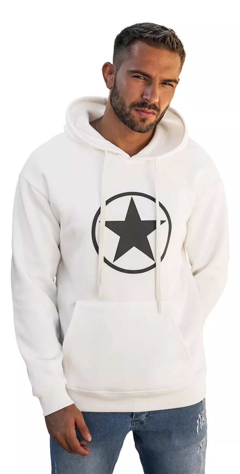 Vyriškas džemperis su gobtuvu. Pagamintas iš minkšto ir malonaus audinio, užtikrinančio komfortą bei patogumą kasdien dėvint. Priekyje žvaigždės simbolis, kuris suteikia modernų ir išskirtinį stilių. Džemperis turi praktišką priekinę kengūros tipo kišenę ir reguliuojamus gobtuvo raištelius. Tamprūs rankogaliai bei apačia garantuoja gerą prigludimą. Stilingas ir universalus pasirinkimas tiek laisvalaikiui, tiek miesto stiliaus deriniams – puikiai dera prie džinsų ar sportinių kelnių.