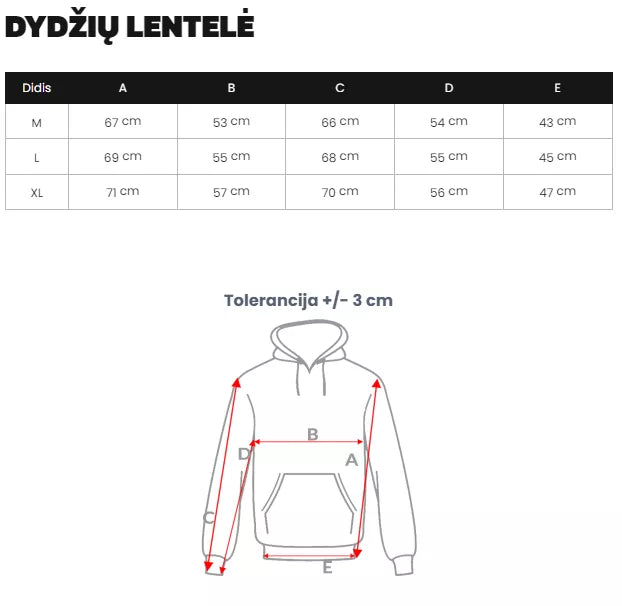 Dydžių lentelę rasite nuotraukų galerijoje.