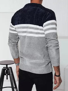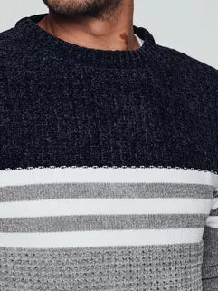 Šiltas vyriškas megztinis su ryškiu dryžuotu raštu, puikiai tiks šaltesnėms dienoms. Pagaminta iš minkšto ir elastingo audinio, užtikrina komfortą ir puikų prigludimą. Šis klasikinis modelis su apvalia iškirpte puikiai tiks tiek prie laisvalaikio, tiek prie elegantiško stiliaus. Tai prideda charakterio bet kokiai išvaizdai.