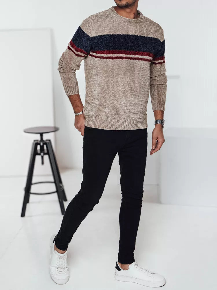 Šis megztinis yra puikus stiliaus ir patogumo derinys. Dėl plačių juostelių ant krūtinės ir rankovių jis puikiai išsiskiria bet kokiu stiliumi. Pagaminta iš minkšto ir šilto audinio, užtikrinančio komfortą visą dieną. Puikus pasirinkimas šaltesnėms dienoms, kai norite atrodyti madingai ir jaustis patogiai.