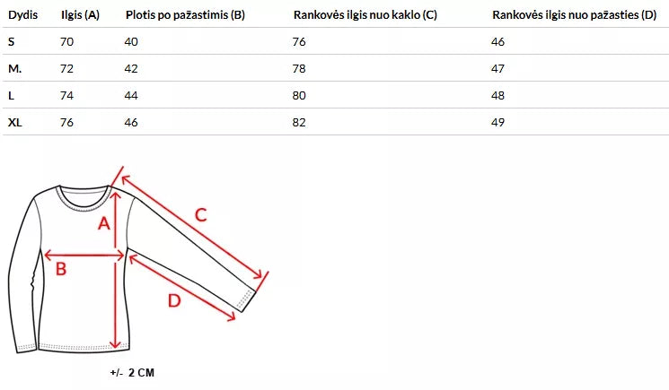 Dydžių lentelę rasite nuotraukų galerijoje.
